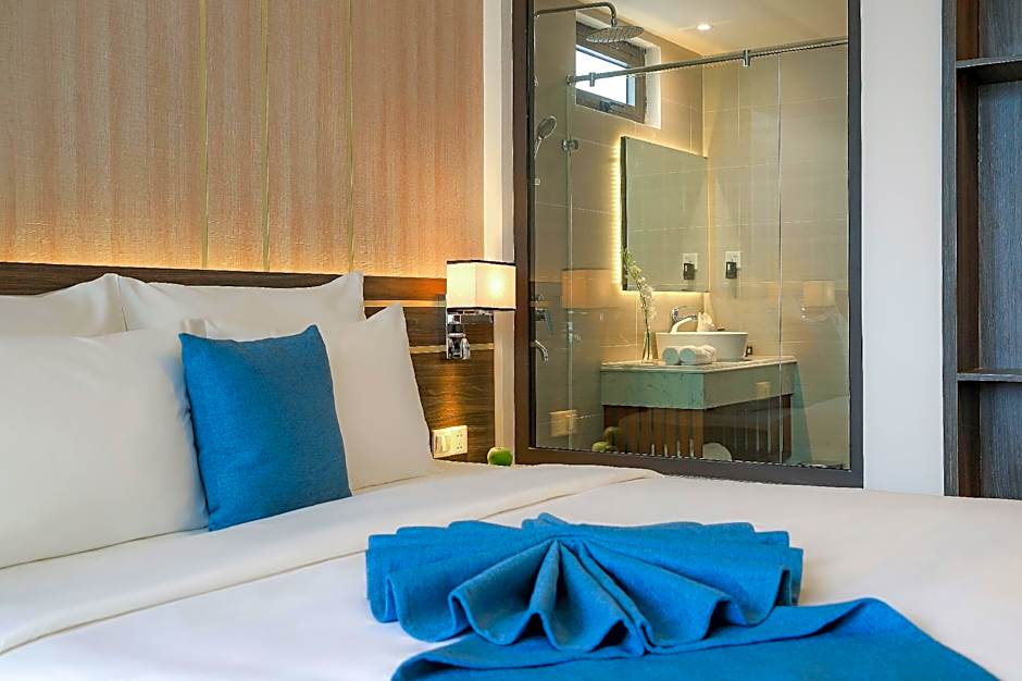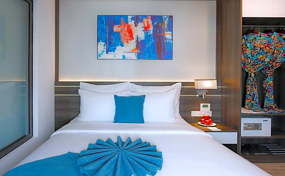 This family room provides a pool with a view. The spacious family room offers air conditioning, a private entrance, a balcony with sea views as well as a private bathroom featuring a walk-in shower.